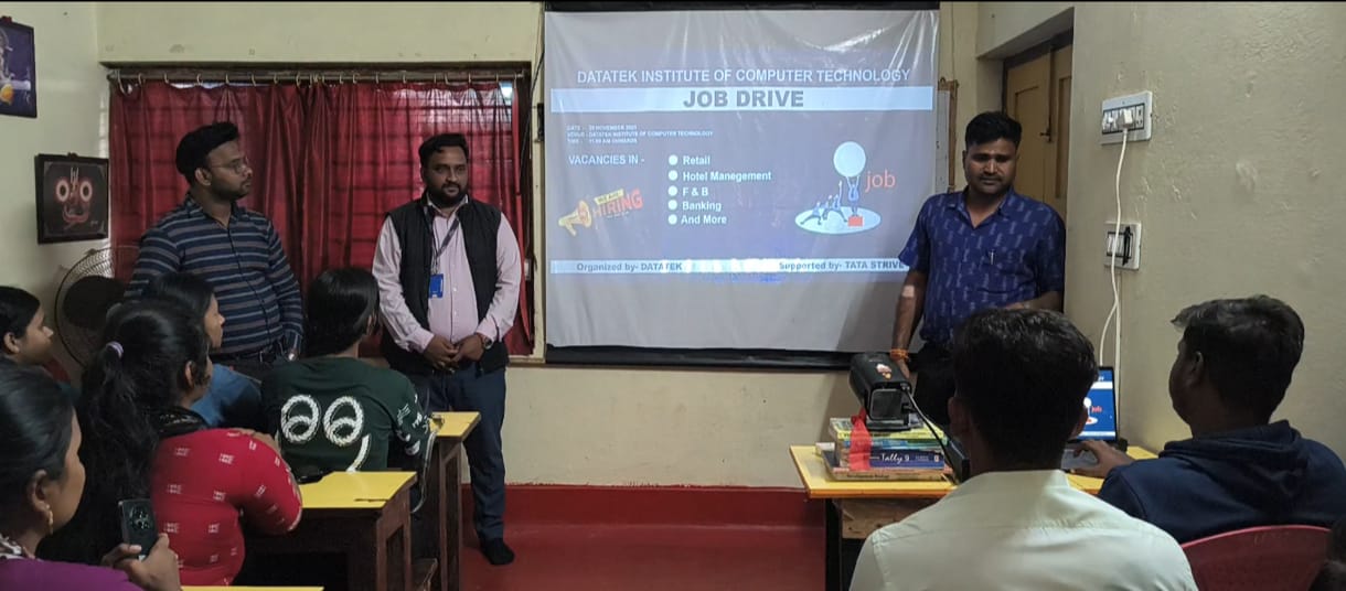 ଡାଟାଟେକ୍ ଇନ୍ଷ୍ଟିଟ୍ୟୁଟ୍ ଅଫ୍ କମ୍ପ୍ୟୁଟର ଟେକ୍ନୋଲଜି, ଚାର ବାଟିଆ ରେ ଟାଟା ଷ୍ଟ୍ରାଇଭ୍ ଓ ଓଡିଶା ସ୍କିଲ୍ ଡିଭେଲପମେଣ୍ଟ ସେଣ୍ଟର ସହ ସହଯୋଗରେ ଯୁବ ନିଯୁକ୍ତି ଅଭିଯାନ ଆୟୋଜିତ |