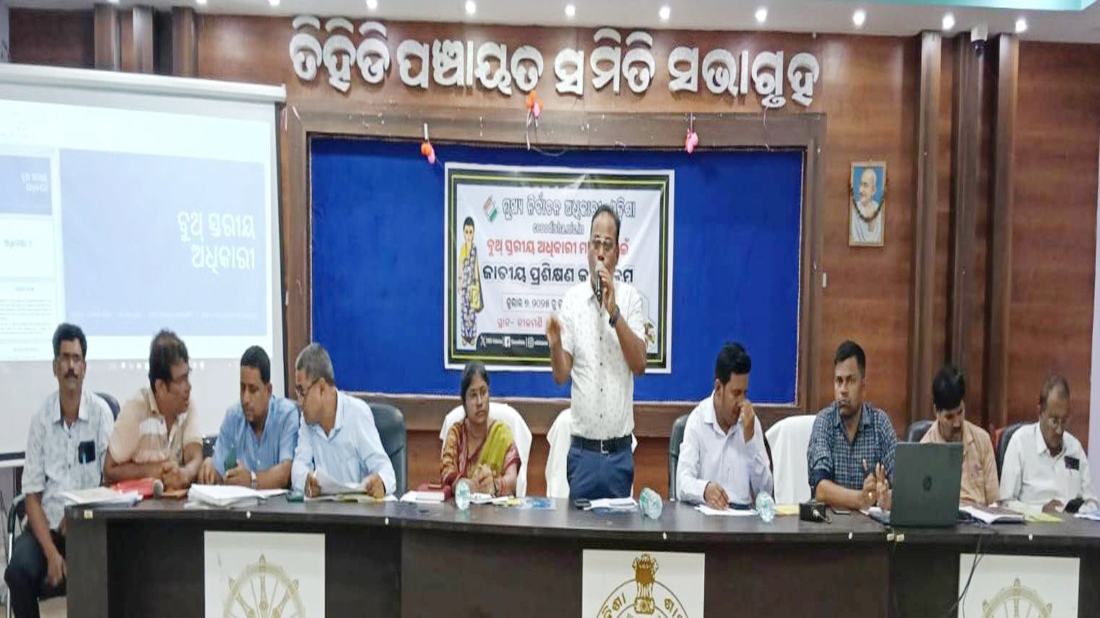 କଟକ(ଉତ୍କଳ ନିଉଜ)୦୭/୦୭/୨୦୨୫ : ଭଦ୍ରକ ଜିଲ୍ଲା ତିହିଡ଼ି ବ୍ଲକ କାର୍ଯ୍ୟାଳୟ ସ୍ଥିତ ନୀଳମଣି ସଭାଗୃହରେ ସୋମବାର ବୁଥ ସ୍ତରୀୟ ଅଧିକାରୀ (ବିଏଲଓ) ମାନଙ୍କର ଏକ ପ୍ରଶିକ୍ଷଣ ଶିବିର ଅନୁଷ୍ଠିତ ହୋଇ ଯାଇଛି । ଏହି ଶିବିରରେ ବିଡିଓ ନିରଂଜନ ବାରିକ ପୌରୋହିତ୍ୟ କରିଥିଲେ । ଏଥିରେ ମୁଖ୍ୟ ପ୍ରଶିକ୍ଷକ ଭାବେ ଡେପୁଟି କଲେକ୍ଟର କାର୍ତ୍ତିକ ନାଥ ମଣ୍ଡଳ, ଅତିରିକ୍ତ ତହସିଲଦାର ନମିତା ଧଳ, ଏବିଡିଓ ମାନସ କୁମାର ଜେନା, ପ୍ରଶିକ୍ଷକ ଭାବେ ମାୟାଧର ସାହୁ, ବିଶ୍ୱନାଥ ଦାସ, ଆନନ୍ଦ ଚନ୍ଦ୍ର ଦାସ, ଅଶୋକ କୁମାର ପଣ୍ଡା, ବିଦ୍ୟାଧର ମହାନ୍ତି, ଦେବାନନ୍ଦ ବିଶ୍ୱାଳ ଓ ମନ୍ମଥ ଦାସ ପ୍ରମୁଖ ଯୋଗ ଦେଇଥିଲେ ।